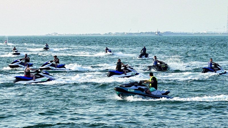 وسط أجواء من المرح والفرح، وعلى هدير أصوات محركات الـ «جيت سكي»، عشّاق البحر يمارسون رياضتهم المفضلة، ويستمتعون بها على شاطئ جميرا، وتحديداً في منطقة أم سقيم 1، التي تجتذب الباحثين عن مثل هذه التجارب التي ترفع الأدرينالين، وتحفز هرمون السعادة، وسط الطقس الخريفي المعتدل، لاسيما برفقة الأصدقاء، ومن يتشاركون الشغف نفسه، وحب المغامرة.