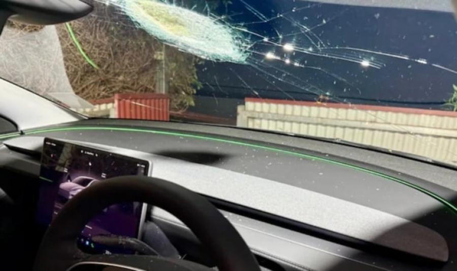 «نيزك» يسقط فوق سيارة «تسلا» أثناء سيرها ويذيب زجاجها الأمامي .. ( صور )