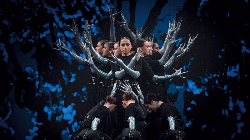 الفرقة المؤلفة من 15 فنانة أدّت العرض بتناسق دقيق بين الضوء والحركة، إذ تمايلت الأذرع المكسوّة بالألوان الفضية اللامعة خلف الوجوه الهادئة، في مشهدٍ جسّد جمال الطبيعة وتنوع عناصرها، وتناغمت الحركات لتصنع لوحات بصرية تمنح الجمهور تجربة فنية آسرة أثارت دهشة الأطفال وتفاعلهم.