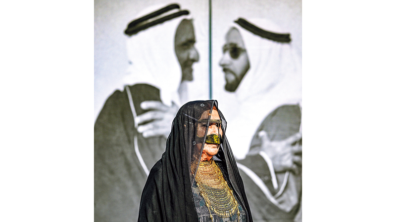 في صورة واحدة تلتقي ملامح الهوية الإماراتية، حيث تجمع بين الإنسان والأرض والإرث.. امرأة إماراتية بزيّها التقليدي، تحمل على كتفيها تاريخاً من الحكمة والصبر، أمام صورة تفيض بالمهابة، وتختزل تلك العلاقة الفريدة والتاريخية التي جمعت بين القائدين المؤسّسين المغفور لهما الشيخ زايد بن سلطان آل نهيان، والشيخ راشد بن سعيد آل مكتوم، طيب الله ثراهما، في رحلة بناء وطن، انبثق من رؤية صادقة، وإيمانٍ راسخ بأن الإنسان هو الثروة الأولى.. إنها حكاية فرحة بوطن استطاع أن يصون جذوره العميقة، ويواصل مسيرته نحو المستقبل بثقة وثبات.. إنها لحظة تؤكد أن الإمارات التي شُيّدت بإرادةٍ صادقة ورؤيةٍ بعيدة، لاتزال تحمل في كل تفصيلٍ من تفاصيلها روح المؤسسين، وإيمانهم بأن الهوية هي أساس النهضة وقلبها النابض.