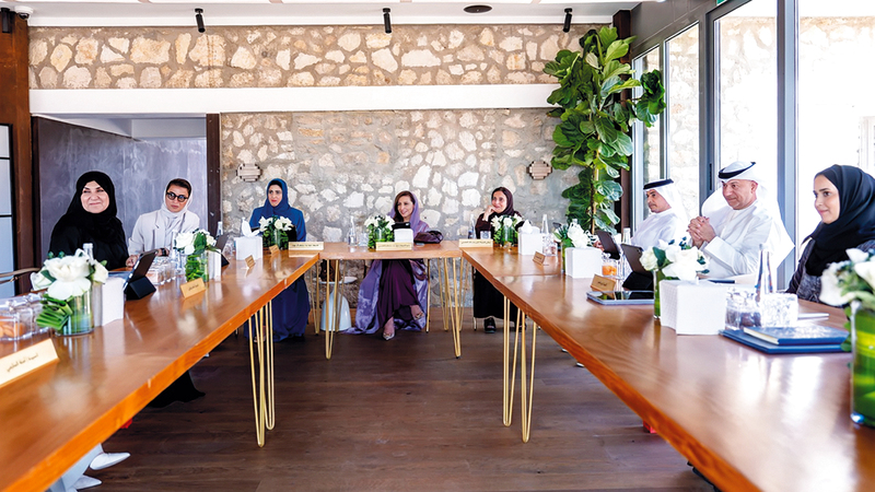 بدور القاسمي خلال ترؤسها اجتماع مجلس أمناء مؤسسة «كلمات». من المصدر