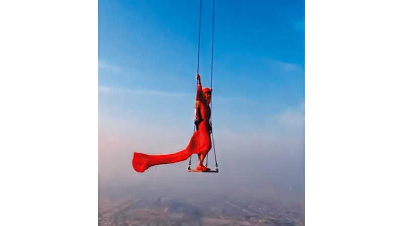 «ذات الفستان الأحمر» على أرجوحة في سماء دبي