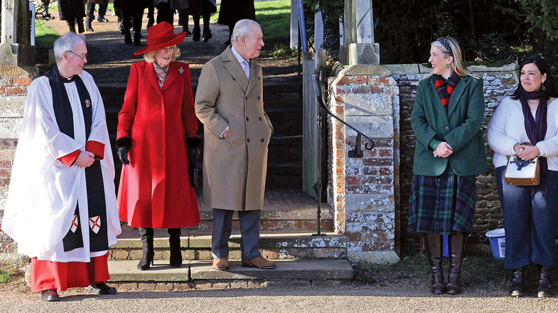 قاد ملك بريطانيا، تشارلز الثالث، عائلته إلى الكنيسة سيراً على الأقدام، أمس، قبل ساعات من قيامه بإلقاء خطابه السنوي بمناسبة عيد الميلاد (الكريسماس).