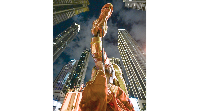 رفيق الرحلة و«سفينة الصحراء»، لم يغب عن الليلة التي لا تُنسى في دبي، ليعلن - عبر مجسم آلي - فصلاً من حكاية الإمارة التي بدأت من هناك، حيث الرمال والصحراء وبيوت العريش، ووصلت إلى هنا، مشيّدة الأبراج وناطحات السحاب والمعالم الأيقونية وأعلى مبنى على وجه الأرض، مجتذبة ملايين الزوار على مدار العام، ومستقطبة عيون العالم خلال احتفالات الترحيب بالعام الجديد.. كما هي الحال في هذا الموكب، الذي زيّن وسط مدينة دبي، وتضمن مشاهد إبهار ستبقى طويلاً في الذاكرة.