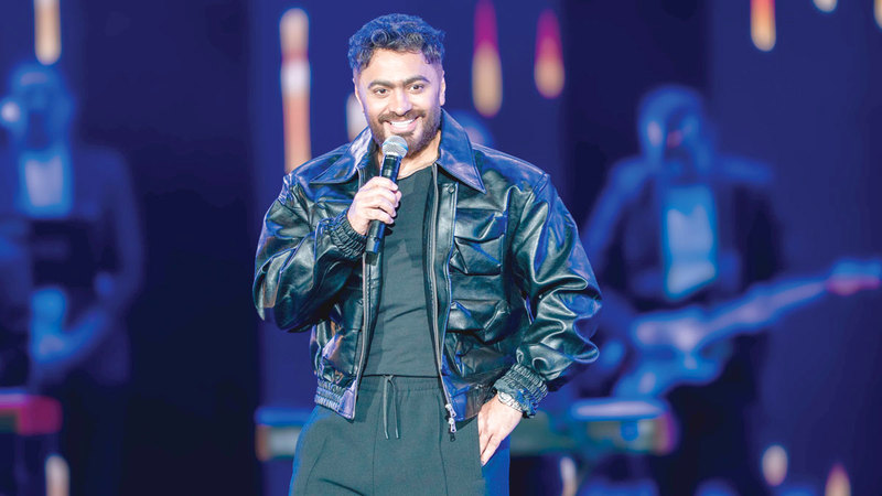 وصدحت أنغام الأغنيات، ذات الطابع الكلاسيكي والشبابي المعاصر، في أرجاء مسرح المجاز المطل على الواجهة المائية في قلب الشارقة، ليعيش الجمهور أجواء استثنائية امتدت لما يزيد على ثلاث ساعات، وحوّل الحفل المسرح إلى مساحة نابضة بالفرح، إذ علت أصوات الغناء الجماعي من الجمهور الذي استمتع بسهرة فنية مميزة، علاوة على الرسائل الإنسانية، حين وجّه النجم تامر حسني لمسة وفاء لابنة بلده النجمة شيرين عبدالوهاب التي تمر بأزمة حالياً، وتشغل جمهورها في كل مكان.