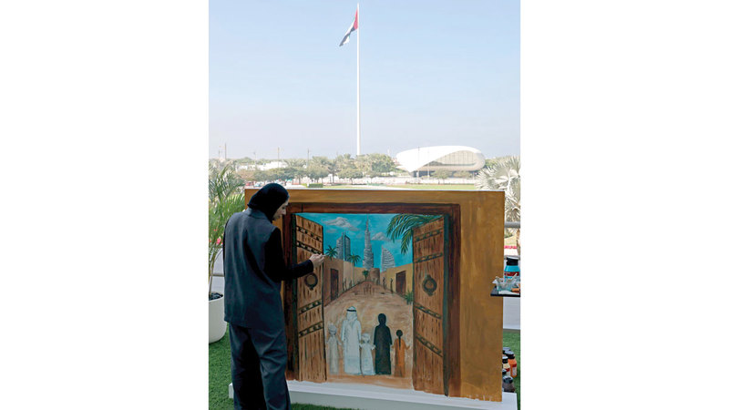 ريشة الإبداع تفتح بوابة تراثية، ليطل منها المتلقي على آفاق قريبة وبعيدة، وتقود إلى مشاهد تمزج بين الماضي العريق والحاضر السعيد في دبي، حيث عائلة إماراتية تخطو في اللوحة نحو درب تتداخل فيه ملامح المدينة الحديثة مع النخيل والعمارة القديمة بألوانها الدافئة.. وفي الخلفية يرفرف علم دولة الإمارات شامخاً، ويطل متحف الاتحاد أيقونةً تشهد على لحظة مجيدة في عُمر الوطن، تروي للأجيال قصصاً تستحق الفخر في إمارات الخير والفن والجمال.