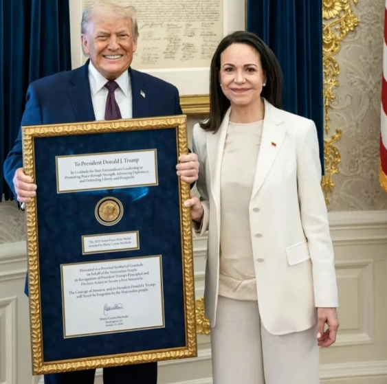قالت لجنة نوبل إن تقديم زعيمة المعارضة الفنزويلية ماريا ماتشادو ميدالية جائزة نوبل للسلام إلى الرئيس الأميركي دونالد ترامب لا يغيّر من هوية الفائز بالجائزة، وأن مالكها لا يتغير إذا أُهديت لشخص آخر أو بيعت له.