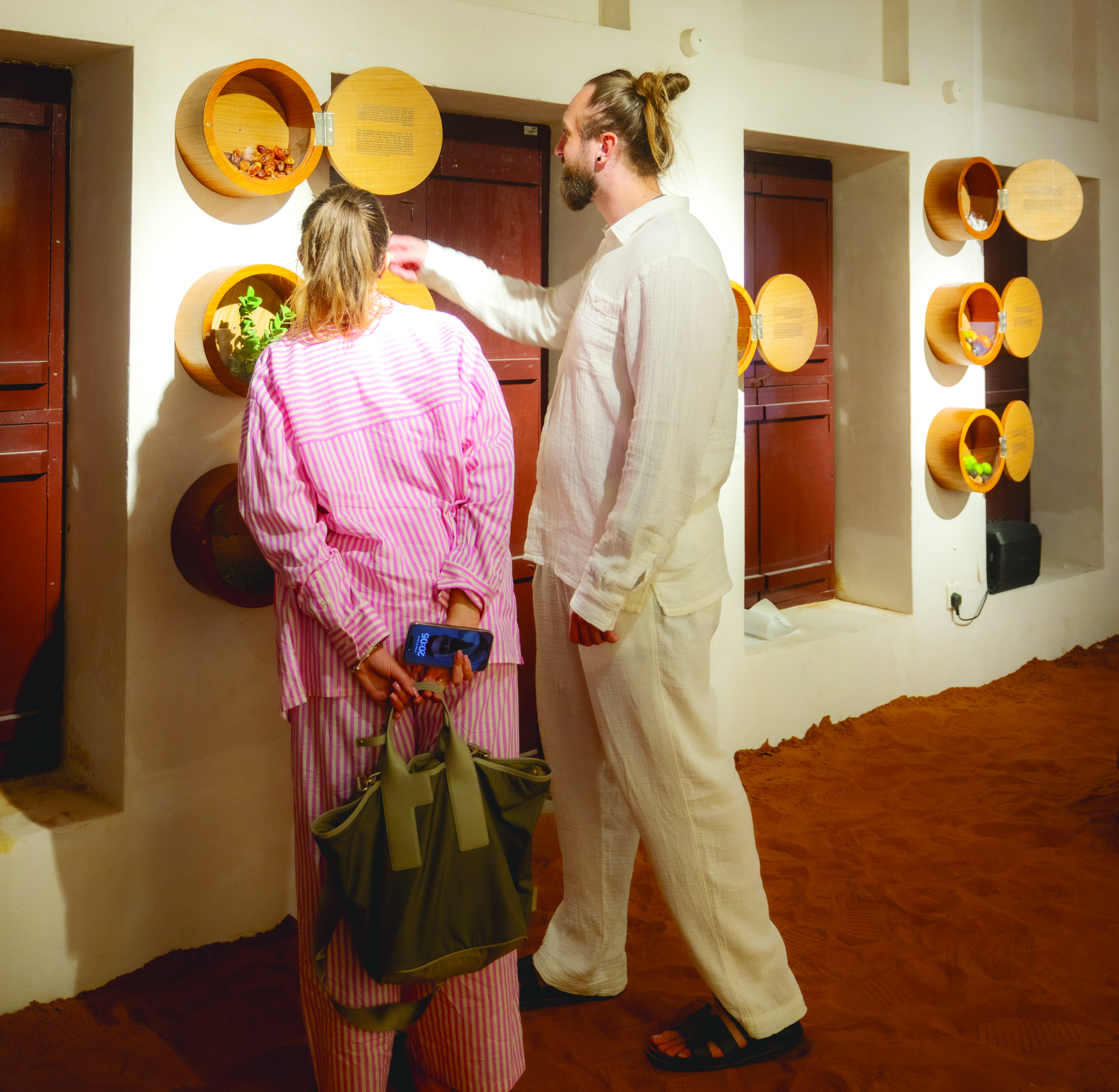 وإلى جانب اللوحات قدّم المعرض مجموعة من المقاعد والقطع الخشبية التي نُفذت في منجرة سيف بالقيزي، التي تُعد أقدم منجرة في دبي، فضلاً عن تقديم الأرشيف الوطني لفيديو أرشيفي يبرز التحوّل في الثقافة المرتبطة بالطعام، ويحمل لقطات تعود إلى ستينات القرن الماضي.