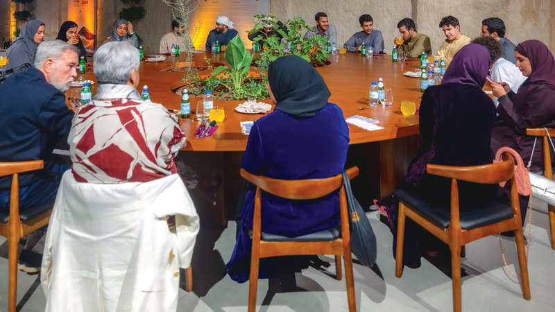ونوهت الفلاحي بأن التجربة تتكامل بين الأكل والفنون، إذ صممت طاولات دائرية صغيرة الحجم، مستوحاة من السرود الذي كان يوضع عليه الطعام، في حين صُممت الطاولة الخاصة بالعشاء بشكل دائري، من أجل منح تجربة العشاء الأجواء الحميمية والعائلية، مشيرة إلى أن شيخة الطنيجي عملت على التصاميم، وحرصت على أن تتوسط الطاولة مساحات فارغة، زرعت بداخلها مجموعة من الأشجار التي تنتمي للبيئة الإماراتية كشجرة الغاف، فضلاً عن بعض النباتات التي تنتمي لبيئات أخرى كدلالة على التبادل الثقافي.