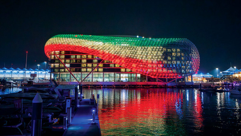 جزيرة ياس تتألق بألوان العلم الكويتي