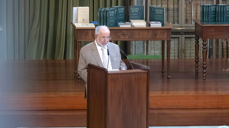 وتفضل سموه بتوقيع النسخ البرتغالية الأولى من «البرتغاليون في المحيط الهندي»، مهدياً إياها لأكاديمية لشبونة للعلوم ومسؤوليها، كما تلقى سموه عدداً من الإهداءات التذكارية من الأكاديمية.