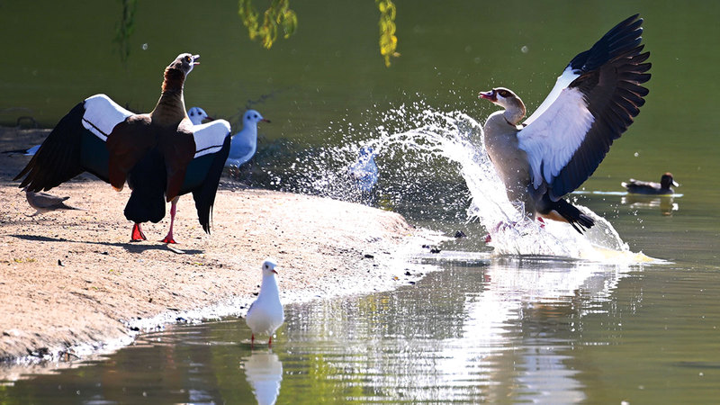 لحظة نابضة بالحياة على ضفاف بحيرة القدرة في دبي، حيث تتجاور عناصر الطبيعة في مشهد واحد يتوازن فيه الهدوء مع الحركة، وتعد بحيرة القدرة جزءاً من محمية القدرة الطبيعية، إحدى أبرز المحميات البيئية في إمارة دبي، والتي تمثل نموذجاً ناجحاً للتوازن بين التنمية والحفاظ على البيئة. تقع المحمية ضمن صحراء دبي، وقد تحولت بفضل التخطيط البيئي الدقيق إلى موطن غني بالحياة الفطرية، يحتضن مئات الأنواع من الطيور المقيمة والمهاجرة، إلى جانب كائنات برية نادرة مثل غزال الريم العربي.