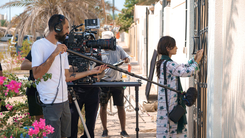 خلال تصوير الفيلم الإماراتي «حوبة» للمخرج ماجد الأنصاري. من المصدر
