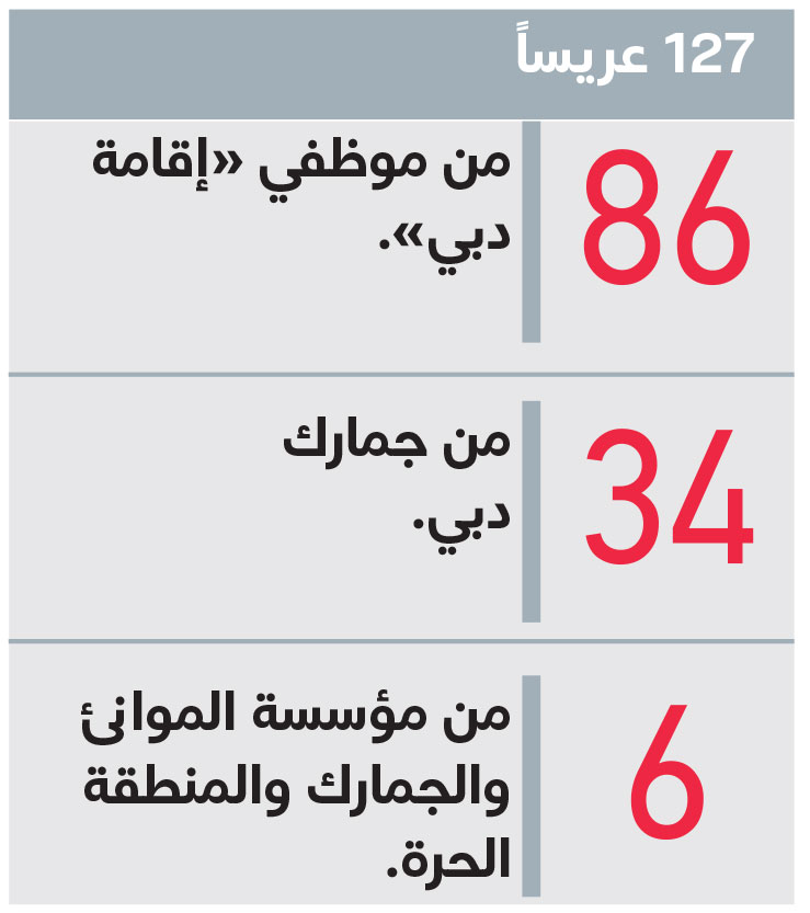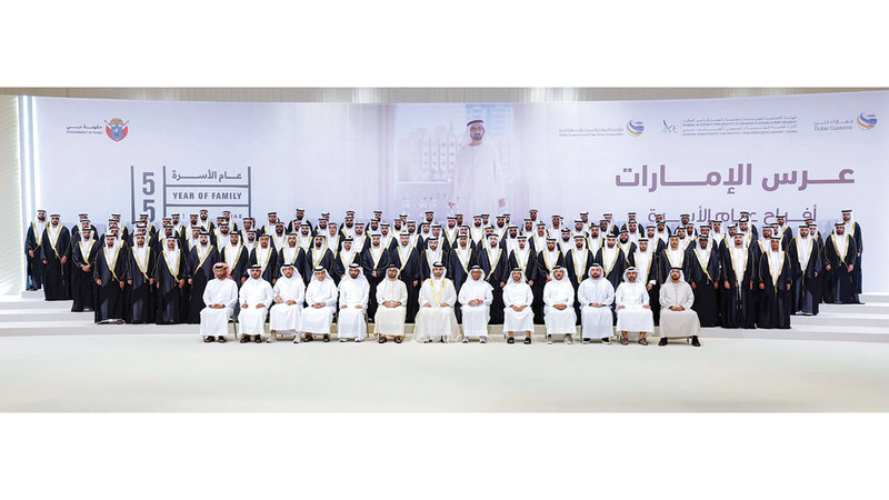 حضر سمو الشيخ منصور بن محمد بن راشد آل مكتوم، رئيس مجلس دبي لأمن المنافذ والحدود، النسخة الـ12 من العرس الجماعي الذي نظّمته الإدارة العامة للهوية وشؤون الأجانب - دبي (إقامة دبي)، بالتعاون مع جمارك دبي، وذلك في مركز دبي التجاري العالمي، بمشاركة 127 عريساً، منهم 87 عريساً من موظفي «إقامة دبي»، و34 عريساً من موظفي جمارك دبي، وستة عرسان من موظفي مؤسسة الموانئ والجمارك والمنطقة الحرة، في مناسبة تعكس قِيَم التلاحم المجتمعي والدعم المؤسسي لبناء الأسرة الإماراتية.