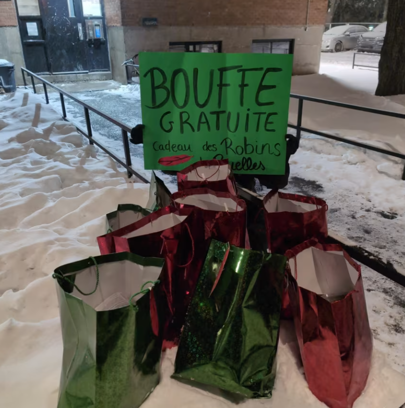 اقتحم لصوص متنكرون في زي شخصية روبن هود متجرًا للأغذية في مونتريال في الثالث من فبراير، ووزعوا المسروقات على الناس، احتجاجًا على ارتفاع أسعار المواد الغذائية، وذلك بعد أسابيع قليلة من استهداف المجموعة نفسها متجرًا آخر متنكرين في زي بابا نويل وجنوده.