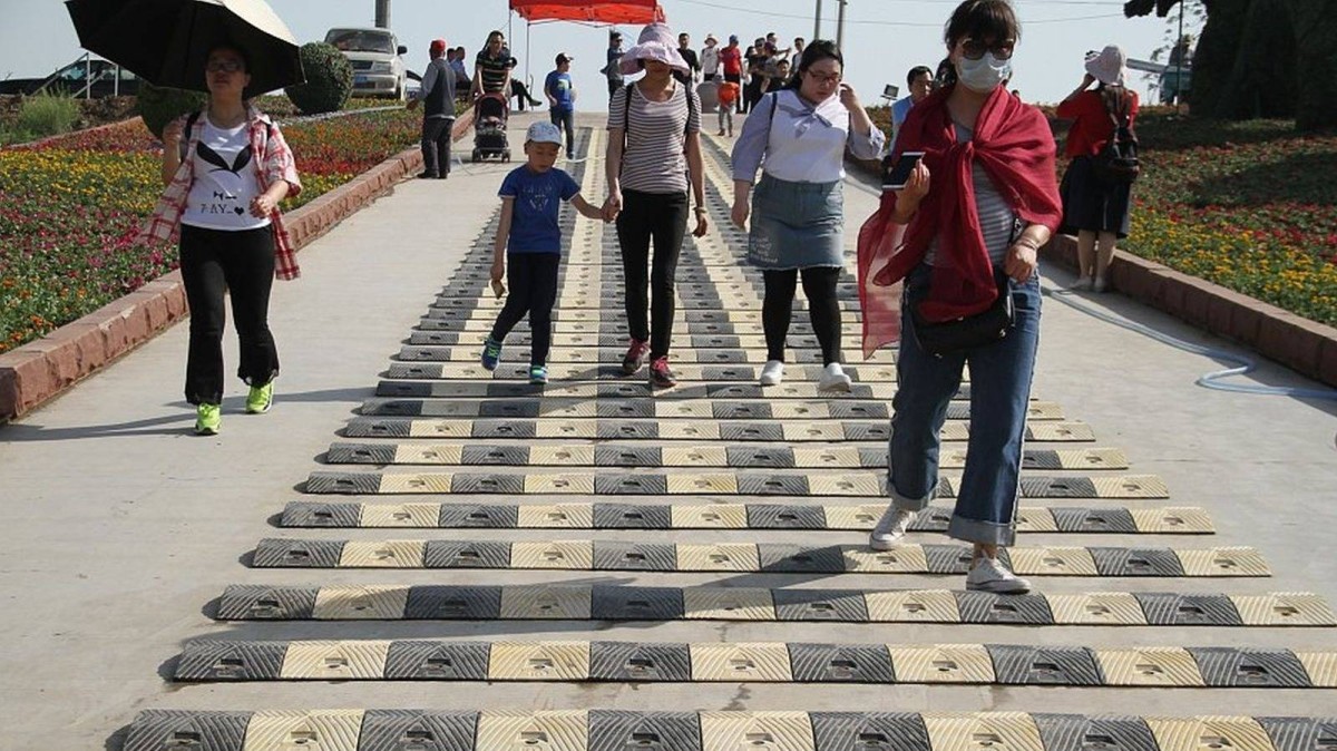 مطبّات سرعة للمشاة .. الصين تبتكر حيلة غريبة كي لا يلتهي السياح بهواتفهم