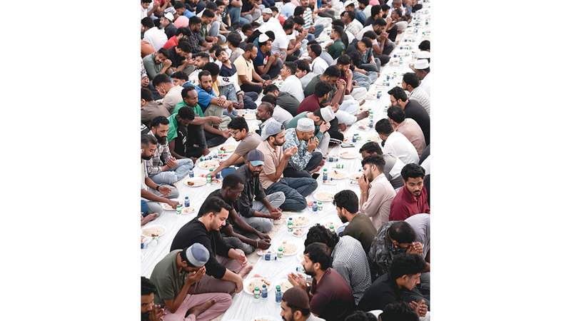 أيادٍ مرفوعة تلهج بالدعوات، وصائمون بانتظار لحظة الفرح الأولى، حين يرفع أذان المغرب، ويتناولون إفطارهم وسط هذه «العائلة الكبيرة»، على مائدة جماعية مفرودة على مد البصر، في مدينة المحبة والتعايش والتسامح، دبي، وتحديداً في مصلى العيد بمنطقة البراحة في ديرة، حيث تتسابق الأيادي على فعل الخيرات، خلال شهر كريم تتجلى فيه أجمل قيم الرحمة والإحسان والعطاء والتكافل والترابط.