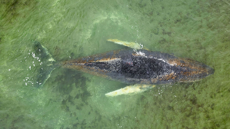 واستمرت محاولات إنقاذ الحوت الأحدب، الذي يراوح طوله بين 12 و15 متراً، لأيام عدة من دون جدوى، إلى أن نجح المنقذون، الخميس الماضي، في شق قناة في الرمال باستخدام حفارة عائمة، ما أتاح للحوت فرصة السباحة مجدداً في الليلة التالية.