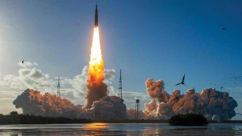 انطلق الصاروخ «سبايس لانش سيستم» في الموعد المحدد، وبعد دقائق معدودة هتف قائد المهمة الأميركي، ريد وايزمان: «نشهد شروقاً رائعاً للقمر».