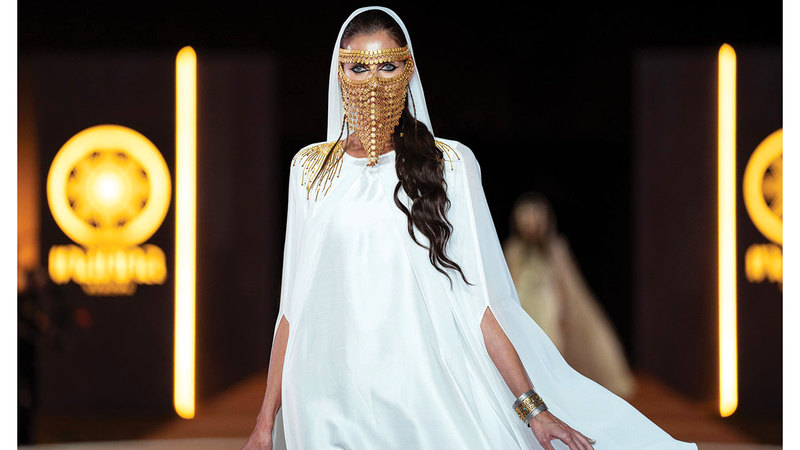 وعن تحول الأزياء إلى سردية، نوهت الشيخة بدور القاسمي بأن «هذا يحدث حين تنبثق كل قطعة من عمق شخصية تاريخية بعينها، فتصميم (زنوبيا) لا ينطلق من جمالية الملكة فحسب، بل من معنى السيادة والصمود الذي جسّدته، ويُترجم مباشرة إلى خطوط وحركة وتكوين تُعبر عن هذا الثقل التاريخي، ومع تكامل هذه العناصر، تتجاوز الأزياء حدود الشكل لتصبح حضوراً متكاملاً وواعياً، ففي (إنانا) لكل عنصرٍ دوره الجوهري، والقطعة تُرتدى كدرعٍ يمنح الثقة، والمجوهرات تُحمل كتميمة تحفظ الذاكرة، والعطر تُستحضر به روح المكان، وهنا يصبح الارتداء فعلاً سيادياً وليس مجرد اختيار يومي، وتصبح المادة نفسها كياناً نابضاً بالمعنى».