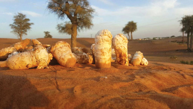 ومن النباتات المهمة التي تظهر في موسم الأمطار أيضاً «الطرثوث» الذي بدأ ظهوره حالياً في عدد من المناطق البرية في أم القيوين والعين والشارقة ورأس الخيمة، ليجذب عشاق الرحلات البرية وهواة البحث عن كنوز الطبيعة.