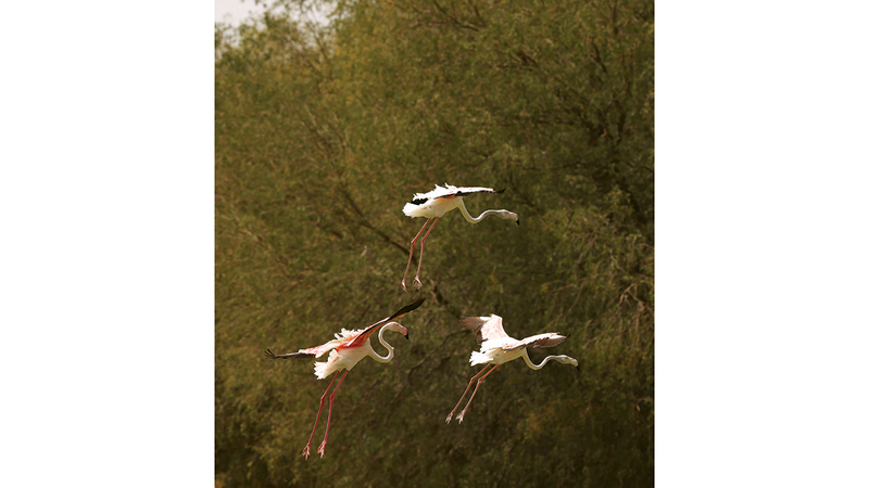 «تحليق ثلاثي» ترسمه الأجنحة الوردية في سماء دبي، حيث ترفرف طيور النحام (الفلامنغو) بحُرية وأمان في المدينة التي تحتضنها، وتوفر لها محمية تشبه بيئتها الطبيعية، لتستقر، ربما بعد عناء الهجرة الطويل، في بحيرات القدرة بدبي، الوجهة التي تستقطب عشاق الطبيعة ومحبي الهدوء والحيوانات والطيور المتنوعة وأشجار المانغروف، والكثير من الأنواع والمَشَاهد الخلّابة التي تضمها هذه الفضاءات الجميلة.