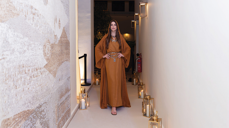وعُرضت مجموعة «إنانا» الحصرية بوصفها امتداداً لمفهوم «المقتنيات الملكية المعاصرة»، حيث وُزّعت بعناية مدروسة في ردهات الطعام المظللة وعلى الشرفات العلوية لـ«بيت اللّوال»، في توزيع بصري يعكس فلسفة العلامة التي ترى في الأزياء درعاً يحيط بالمرأة، وفي المجوهرات تمائم للحماية، وفي العطور وسيلة لاستحضار الهوية وتجسيد حضورها.