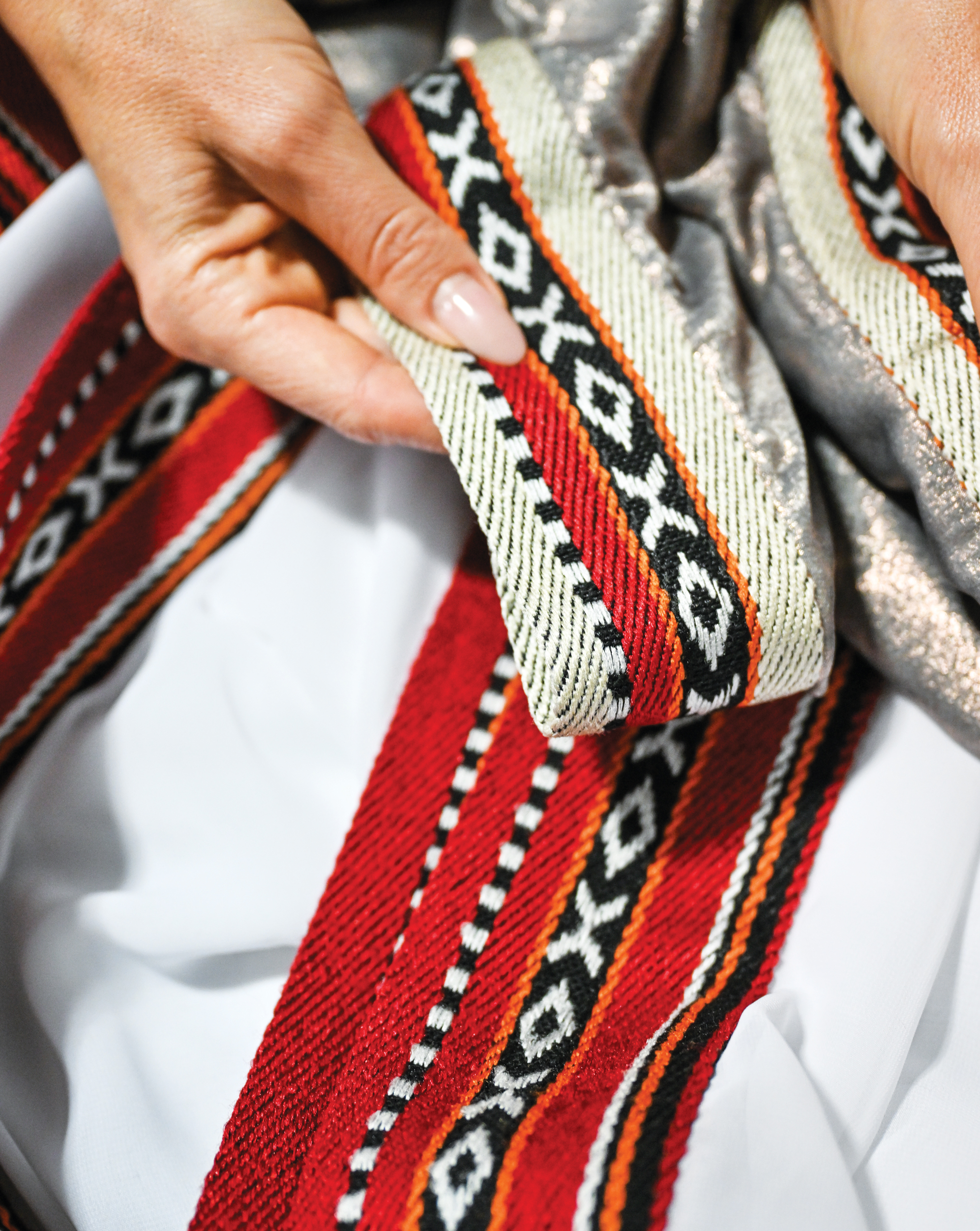 وجدت المصممة الروسية كاتيا في حرفة السدو التراثية مصدر إلهام استثنائي؛ إذ أسرتها خيوطه الملونة وعمق الحكايات المغزولة فيه، لتنسج منه معاطف وسترات معاصرة، إلى أن توسعت لتصاميم بأسلوب يعكس ملامح من الأصالة الإماراتية بروح عالمية، لتنجح في إدخال السدو على تشكيلات عباءات خاصة وصلت إلى 70 دولة، إيماناً منها بأهمية نشر هذا التراث العريق على نطاق أوسع، تقديراً لما يحمله من إبداع وهوية مميزة.