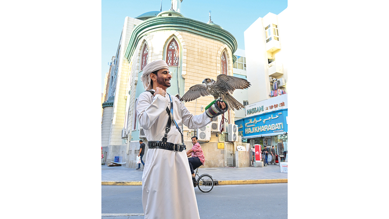 بزيّه الكامل وابتسامته الخارجة من القلب، صقّار «يحاور» طيره، وكأن بينهما لغة خاصة تعرفها العيون، ليزهو حامل الصقر بملمح من هوية دولة الإمارات، يُعدّ رمزاً لها، ويُحتفى به منذ أزمنة بعيدة، وتُقام له المهرجانات والمسابقات، وتُرصد لعشاقه المكافآت.. وهنا في قلب دبي، حيث منطقة الرأس القديمة، يحضر هذا الرمز، ليكون أمام زوار المدينة وضيوفها من كل مكان، ليروي حكايات مدينة محلقة في أعالي الإنجازات دوماً.