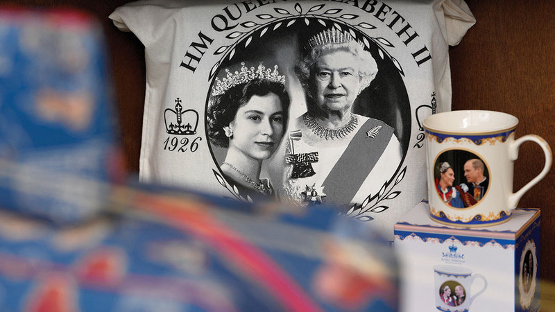 من تذكارات الاحتفاء بمئوية الملكة إليزابيث الثانية. أ.ب