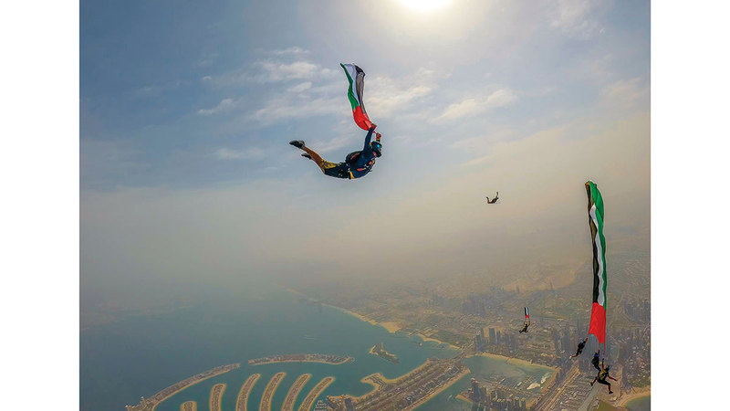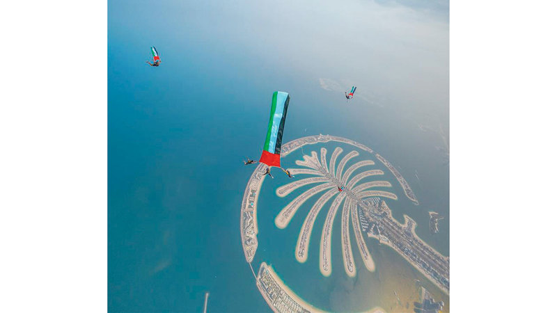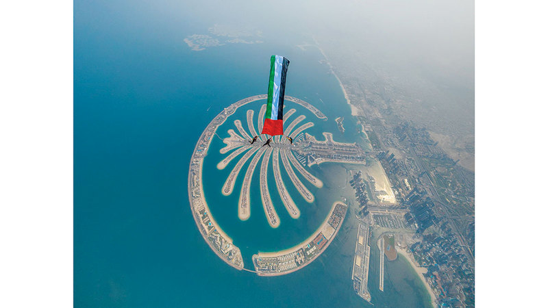 «ارفع العلم» على ارتفاع 13 ألف قدم فوق نخلة جميرا