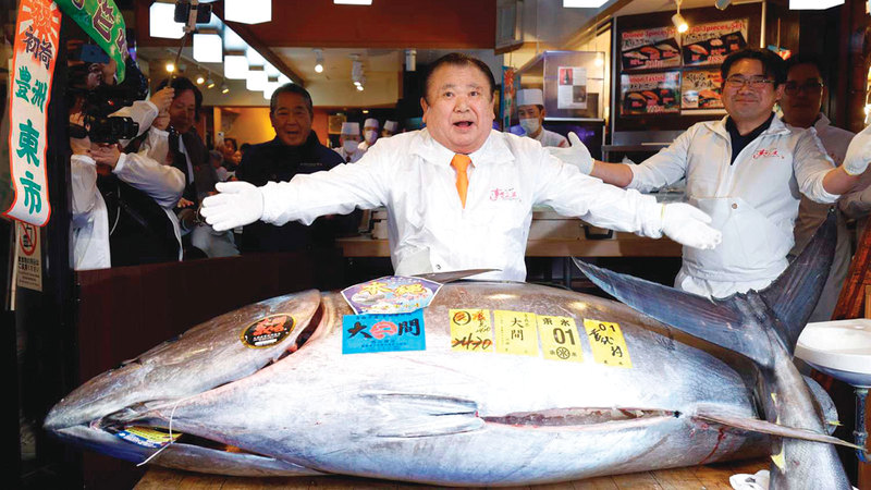 واشترت شركة «كيومورا كوربوريشن» (المالكة لسلسلة مطاعم «سوشي زانماي») السمكة العملاقة من سوق تويوسو للأسماك في طوكيو، في الخامس من يناير الماضي.