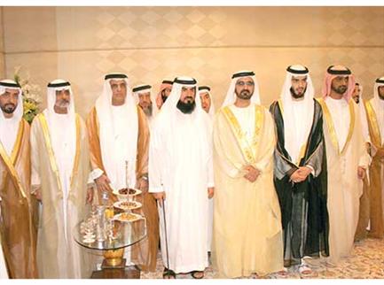 حضر صاحب السموّ الشيخ محمد بن راشد آل مكتوم، نائب رئيس الدولة رئيس مجلس الوزراء حاكم دبي، حفل الغداء الذي أقامه الشيخ محمد بن حمدان آل نهيان في فندق غراند حياة بدبي ظهر أمس بمناسبة زفاف نجله الشيخ زايد إلى كريمة الشيخ ماجد بن عبيد آل مكتوم.