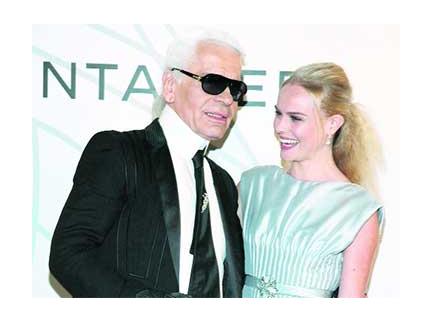 المدير الفني لدار أزياء شانيل والممثلة الأميركية كايت بوزوورث يحضران حفل «موبايل آرت شانيل» الذي أقامته الدار، أول من أمس، في نيويورك
