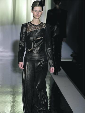 عارضة تقدم زياً من إبداعات المصمم البرتغالي، آنا سالازار ، في أثناء معرض لشبونة للأزياء الأسبوع الماضي.