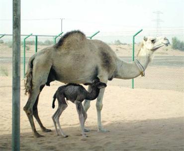 صورة بثتها وكالة الانباء الفرنسية «ا.ف.ب» أمس، لأول جمل مستنسخ في العالم والذي «ولد» في دبي في الثامن من الشهر الجاري في «مركز تناسل الإبل».