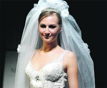 عارضة تقدم زياً للمصمم اللبناني ميري داغر في عرض لأزياء ربيع وصيف 2009 في القاهرة أول من أمس.