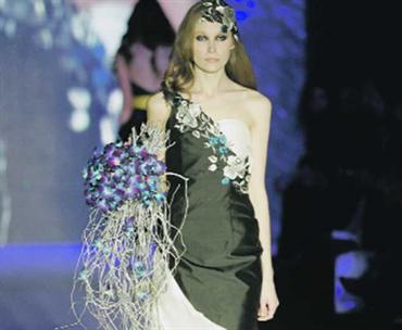 عارضة ترتدي زياً في أسبوع الموضة في العاصمة الأسترالية سيدني الذي اختتم فعالياته أول من أمس.