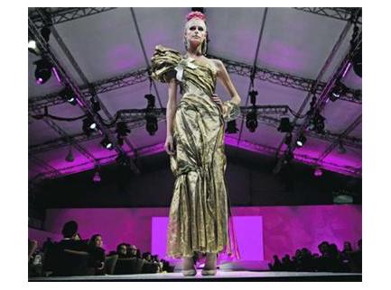 مجموعة من عارضات الأزياء اللاتي يقدمن عدداً من ابتكارات مصمم الأزياء الفرنسي كريستيان لاكروا لملابس السهرة لربيع وصيف ،2009 خلال العرض الافتتاحي لمهرجان الأزياء السنغافوري، أول من أمس، في سنغافورة.