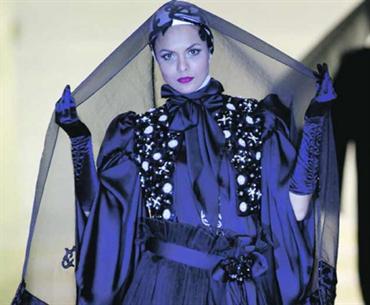 عارضة تقدم زياً خلال مهرجان الموضة الإسلامية الذي أقيم أخيراً في جاكرتا.