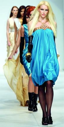 من ألوان حرير غنية، وشرابات متراقصة على الجسد، وخامات مطرزة بطيور وزهور حالمة، استطاعت دار أزياء «أماتو كوتور»، أن تختتم اليوم الثالث من «أزياء دبي»، بهتاف وتصفيق لم يتوقف منذ الظهور الأول لأول تصميم، وهي المجموعة التي كانت أقرب لشهرزاد عصرية، بخطوط ولمسات شرقية بحتة، وقصات متطرفة أحياناً، وشديدة الرومانسية أحياناً أخرى، بلمسات شرقية واضحة ومثيرة، لـ 32 فستاناً.