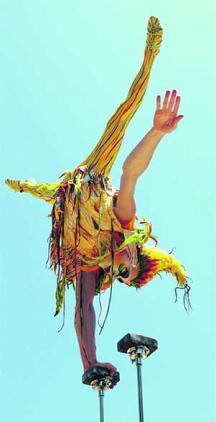 لاعب يقدم عرضاً في لوس أنجلوس أول من أمس، للاحتفال بمرور 25 عاماً على تأسيس سيرك الشمس، وهي الشركة الكندية المتخصصة في الترفيه منذ ،1984 والتي توسعت بسرعة لتجمع اليوم نحو 3500 موظف من 40 دولة، وبربح سنوي يصل إلى 600 مليون دولار أميركي.