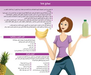 وتوضح بدوي أن هناك عدداً من الأمور التي يجب على المرأة التقيد بها والتركيز عليها، من أهمها معرفة أننا نتناول نحو 30٪ زيادة عن حاجة الجسم اليومية منها، خصوصاً الدهون المشبعة، إضافة إلى الكربوهيدرات المعقدة، والتقليل من استخدام الملح، والمشروبات العالية الكافيين، وإضافة الألياف، وتناول الخضراوات والفواكه، مشيرة إلى أن هناك أنواعاً عديدة من الأطعمة الغنية بالفوائد التي يحتاج إليها الجسم، والتي تساعد على تعزيز صحة الجسم على المدى البعيد، مؤكدة أنه من المهم التركيز على الاختيارات الذكية والصحية بين الأطعمة، والمقادير المضافة إلى الأطعمة، فهناك دائماً بدائل صحية وغنية، والمهم هو التركيز عليها.