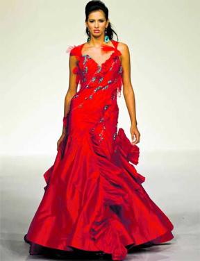 عارضة تقدم تصميماً لمصمم الأزياء المكسيكي البرتو رودريغيز مرسيدس خلال أسبوع الموضة الذي انطلقت فعالياته أول من أمس، في مكسيكو سيتي.
