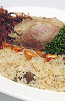 6- يضاف الأرز إلى الخليط والقليل من خلاصة مرقة اللحم ويطهو على نار هادئة حتى ينضج الأرز تماماً.