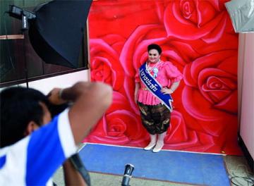مجموعة من المتسابقات البدينات يتهيأن خلف الكواليس في المنطقة الأثرية أيوتايا في تايلاند، قبيل المشاركة في مسابقة «ملكات الجمال الضخمات» «جمبو كوين بيوتي» للنساء فوق وزن الثمانين، التي جرت الأسبوع الماضي، وهي المسابقة التي شاركت فيها نحو 30 متسابقة.