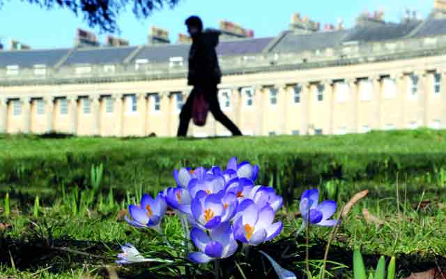 زهور ربيعية متفتحة في حديقة واحد من القصور البريطانية في مدينة باث البريطانية، وتنعم بريطانيا بطقس ربيعي مثالي، بعد شتاء قارس. غيتي