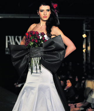 عارضات يقدّمن ابتكارات للمصمّمة المقدونية إيلينا لوكا خلال عرض للأزياء نظم أول من أمس، في العاصمة مقدونيا.