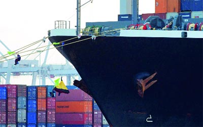 المحتجون قيدوا أنفسهم بالسلاسل على السفينة. أ.ف.ب