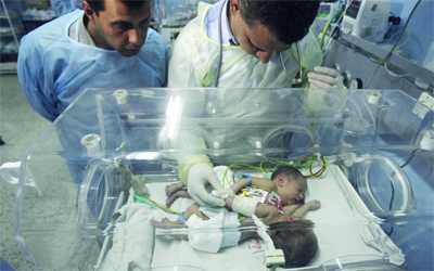 وكان العاهل السعودي الملك عبدالله بن عبدالعزيز أمر بنقل التوأم السيامي الفلسطيني من قطاع غزة إلى المملكة الأسبوع الماضي في طائرة خاصة لإجراء الفحوص اللازمة لفصلهما إن أمكن على نفقته الخاصة.